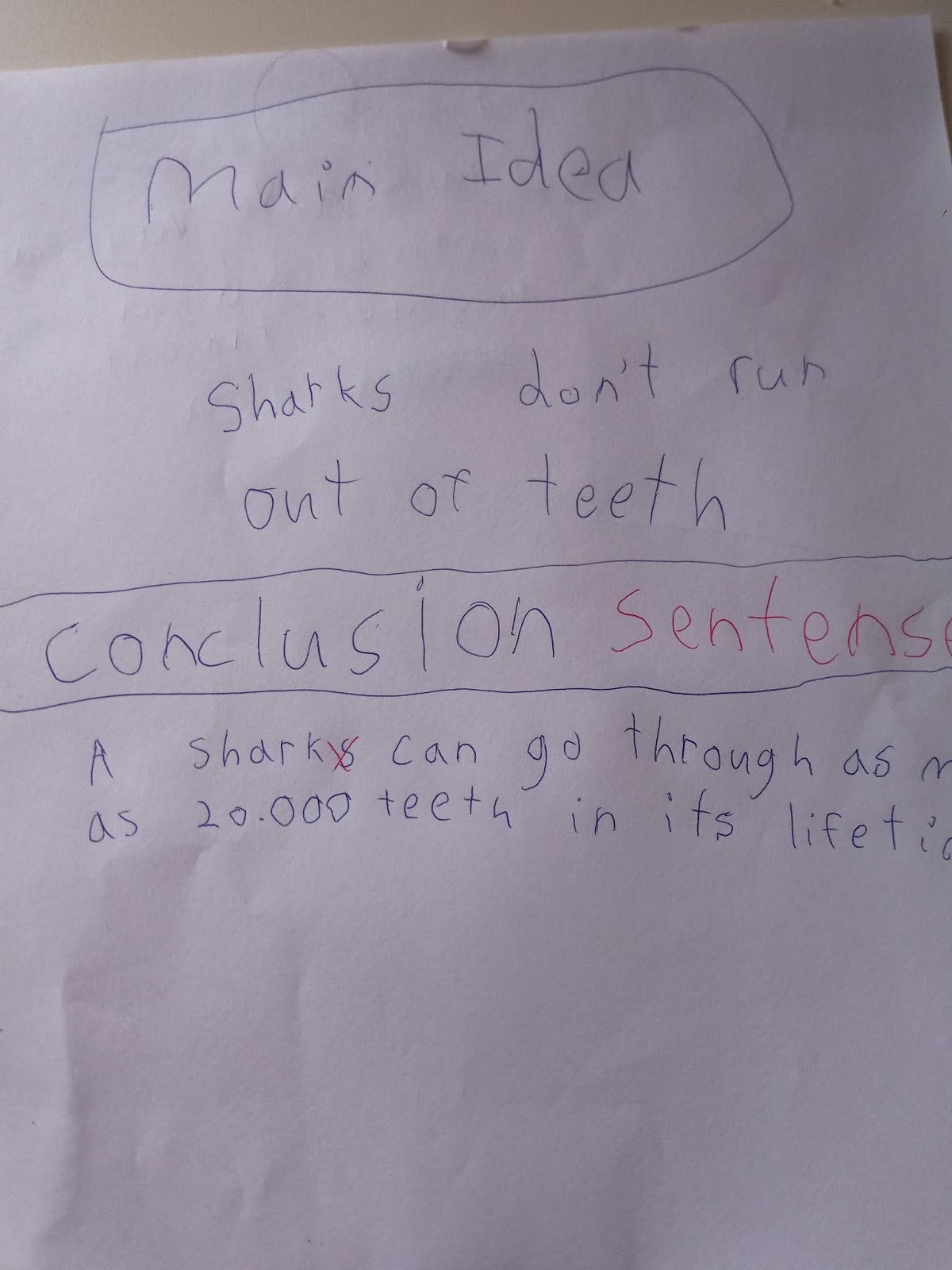 Task 2: Read the text about sharks to somebody in your bubble. Tell somebody why sharks always have nice teeth. (That is called explaining.)